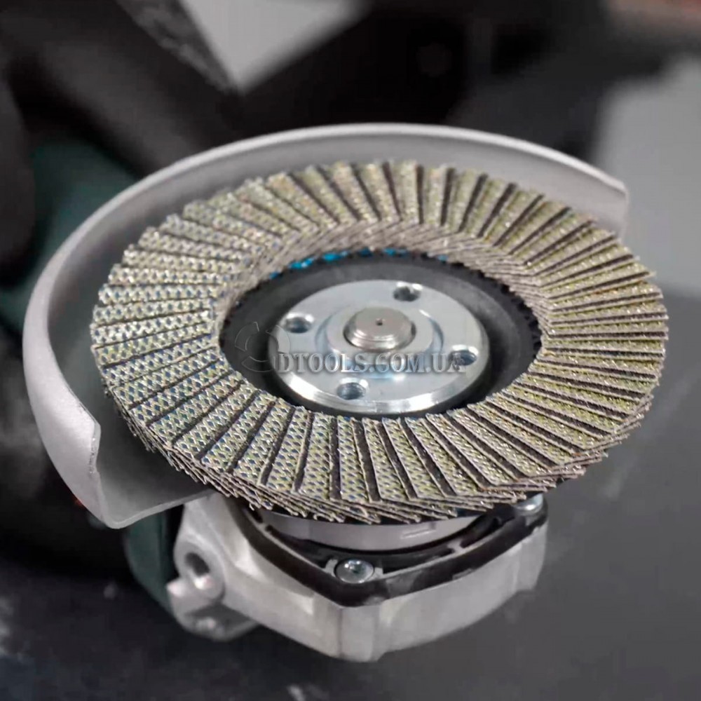 Основу конструкции формируют 100 лепестковых сегментов. Такая геометрия обеспечивает мягкий контакт с поверхностью и равномерный съём без рваных следов. Особенно это заметно при работе по керамограниту и дектону, где любая неточность сразу отражается на результате.